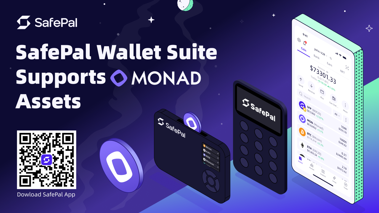 We are excited to announce the integration of Monad mainnet, a next-generation, Ethereum-compatible chain delivering 10,000 TPS, sub-second finality, low fees, and scalable decentralization. Native assets on Monad will be supported on the SafePal software and hardware wallet, with browser extension wallet to follow.
