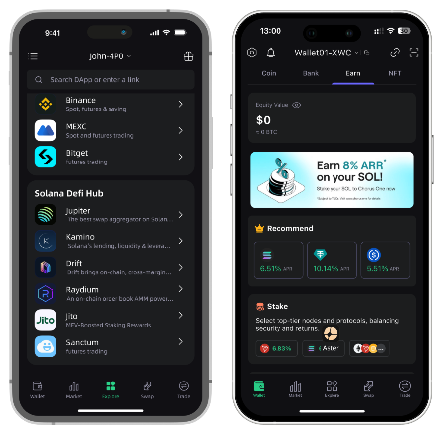 -Native support to buy, swap, trade, and stake $SOL and SPL tokens